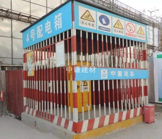 3.雙層硬防護間的防護棚外立面掛藍底白字:加強安全用電,防止觸電傷害等安全警示語,操作規程牌,帽頭設置建筑企業標識;